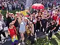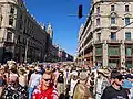 The 30th Budapest Pride was held on 28 June by the Szivárvány Misszió Alapítvány (lit.'Rainbow Mission Foundation') and Budapest's local government as a municipal event, reviving an earlier tradition of a freedom celebration in June each year to commemorate the withdrawal of Soviet troops.[127][128] Karácsony argued that as a municipal event, it was not covered by the law on assembly, therefore the police could not prohibit it,[129][130] but the police stated they would process this as any other assembly,[131][132] and they prohibited it.[133][134] The official justification included photos and videos of men kissing and drag queens, including a video which was not taken at a Pride parade.[135] The organizers did not appeal the decision.[136]