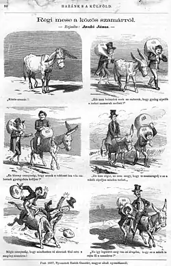 • János Jankó (Tótkomlós, October 1, or November 3, 1833 - Budapest, March 29, 1896), originally a painter, but for financial reasons chose to be a journal illustrator. He is considered to be the first Hungarian cartoonist who consciously dealt with this genre. Together with Jókai, they created many picture stories in the style of Wilhelm Busch. His published drawings exceed thirty thousand (accord ing to Kálmán György's cyclopedia: seventy thousand).[10][11]