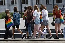 The amendments sparked a series of protests in Hungary by members and supporters of the LGBTQ community and by human rights groups.[45][46][47][48][49][50] A petition and letter were written to President János Áder of Hungary, urging him not to sign the law.[51] The online petition had been signed more than ten thousand times as of 7 August 2021.[51]