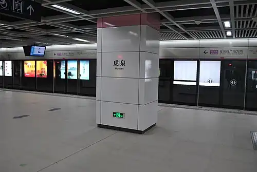 Huquan Station (Chinese: 虎泉站) is a station of Line 2 of Wuhan Metro. It entered revenue service on December 28, 2012. It is located in Donghu New Technology Development Zone.[1]