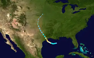 - ^ National Weather Office — Houston-Galveston (2007). "Upper Texas Coast Tropical Cyclones in the 1980s". Dickinson, Texas: National Oceanic and Atmospheric Administration. Archived from the original on March 28, 2007. Retrieved April 2, 2007.
