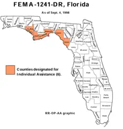 - ^ Federal Emergency Management Agency (September 4, 1998). "Designated Counties for Florida Hurricane Earl". Government of the United States. Archived from the original on May 8, 2009. Retrieved June 8, 2009.