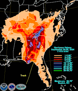 Hurricane Helene total rainfall map