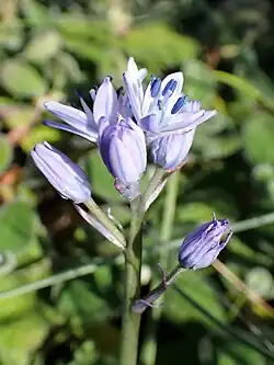 Hyacinthoides mauritanica is a species of dwarf bluebell, growing up to 10 cm (3.9 in) in height.[3] It is a bulbous perennial, with long, narrow leaves and bell or star-shaped blue, violet or white flowers in spring.[4]