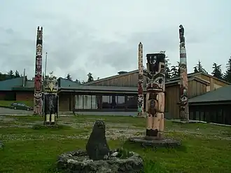 The Hydaburg Totem Park is a city park in the small community of Hydaburg, Alaska, located on the western side of Prince of Wales Island in southeastern Alaska. The park is also part of the many parks inside the Tongass National Forest. The park, created in 1939, contains a collection of preserved and recreated totem poles, based on originals collected from small communities abandoned by the Haida people to form Hydaburg. The old totem poles were brought to the park by crews from the Civilian Conservation Corps, and were recreated and preserved under the guidance of Haida master carvers.[2] The park has been the subject of a major restoration effort in the 2010s. The old totem poles, that were removed from the park, remain in outdoor storage near the old cannery in the downtown area of the village.