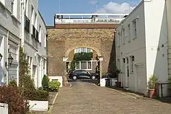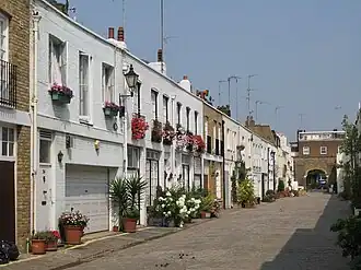 Hyde Park Gardens Mews is a mews street in the Tyburnia area of London, W2. The mews consists of 46 residential properties, originally built as stables for Hyde Park Gardens, on a cobbled road with two entrances. The west entrance passes under an archway. The mews is entered by Clarendon Place at the west and Stanhope Terrace to the east. Sussex Place bisects the mews in the middle.