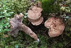 - ^ Larsson; Svantesson; Miscevic; Kõljalg; Larsson (2019). "Reassessment of the generic limits for Hydnellum and Sarcodon (Thelephorales, Basidiomycota)". MycoKeys (54): 31–47. doi:10.3897/mycokeys.54.35386. PMC 6579789. PMID 31231164.