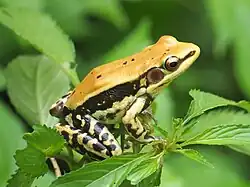 Hydrophylax bahuvistara,[1] commonly known as the widespread fungoid frog,[1] is a colourful frog found widespread in peninsular India, distributed in Maharashtra, Karnataka, Goa and Madhya Pradesh. It is very similar to another species with which it overlaps partly in range, Hydrophylax malabaricus.[2]