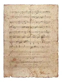 Under the reign of Prince Florestan I who become the Monegasque sovereign in 1841, the Principality experienced an unstable internal situation. As early as 1821, repeated troubles broke out in Menton encouraged by agents of the Kingdom of Sardinia, abusively interpreting the treaty of Stupinigi signed on November 8, 1817, as a treaty submitting the Prince of Monaco and the Principality to a foreign authority.[3] In order to respond to the broadcast in Monaco of seditious songs imported from the County of Nice, Monégasque lawyer Théophile Bellando de Castro wrote French lyrics and composed the music of the first version of the "Hymne Monégasque" in 1841 as a tribute of loyalty to the Prince and his family. Later, French musicologist Castil-Blaze modified the melody and made several other minor changes. In 1848, the National Guard, created by Prince Florestan, adopted Bellando's song, and it became the "March of the National Loyalists". In 1896, a new arrangement for piano composed by Monégasque composer Charles Albrecht was published by Tihebaux in Paris and titled "Air National de Monaco". In 1897, Decourcelle, a publisher in Nice, printed a new version of Albrecht's composition numbered 429 and titled "Hymne National de Monaco".[1]