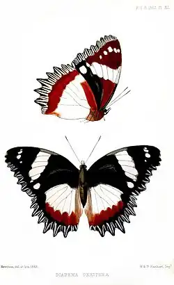Hypolimnas dexithea (Madagascar diadem) is a species of Hypolimnas butterfly endemic to Madagascar. The species was described in 1863 by William Chapman Hewitson from a specimen collected by J. Caldwell from Antananarivo in Madagascar. It later became one of the species targeted by collectors on account of its size and colour.