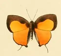 Hypomyrina nomenia, the orange playboy, is a butterfly in the family Lycaenidae. It is found in Nigeria, Cameroon, the Republic of the Congo, Angola, the Central African Republic, the Democratic Republic of the Congo, Uganda, Tanzania and Zambia.[2] The habitat consists of forests.