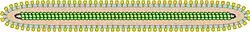 The viruses in this family are non occluded, enveloped, rod-shaped virions measuring 500–1,000 nanometers (nm) in length and 50–80 nm in diameter.[4] The virions contain a thin, dense central nucleocapsid that encases the DNA-protein core. The nucleocapsid core is surrounded by an amorphous proteinaceous tegument layer.[5] The outer surface of the virions is studded with helical polymeric structure composed of virally-encoded and host-derived protein dimers. The virions contain at least 35 polypeptides which range in size from 10 to 200 kilodaltons.