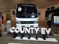 The County Electric was released in 2020.[8] It is equipped with features such as vehicle attitude control, 4-wheel disc brakes, and a rear emergency door. A 7-inch LCD cluster and button-type gear lever are applied.[7]