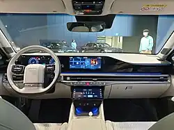 The seventh-generation Grandeur is equipped with the infotainment system ccNC, two built-in cameras, two digital keys, interior fingerprint authentication system, reclining (rear seat), and electric door curtains. The hybrid model is equipped with an E-motion drive that uses a drive motor to improve driving performance.[28]