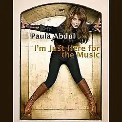 "I'm Just Here for the Music" is a song by American singer and entertainer Paula Abdul. The track was written by Danielle Brisebois and Wayne Rodrigues, who had co-written Natasha Bedingfield's 2004 hit single "Unwritten"; it was produced by Oliver Leiber, who had produced a majority of Abdul's debut studio album Forever Your Girl (1988). It succeeds Abdul's 2008 comeback single to music, "Dance Like There's No Tomorrow". It was released on May 5, 2009, as a standalone single via Filament Entertainment Group, a label distributed by Caroline Distribution. To date, it is Abdul's last single release as a lead artist.