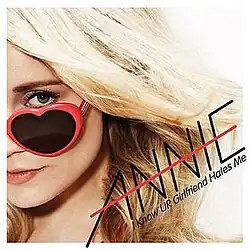 "I Know UR Girlfriend Hates Me" is an electropop song performed by Norwegian recording artist Annie. It was released on 14 July 2008 as the lead single from her second studio album, Don't Stop (2009).[1] However, the song is not featured on the standard track listing of the album but is available on the special edition bonus disc.