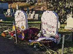 Gravestones of Susan B. and Mary Stafford Anthony with "I Voted" stickers