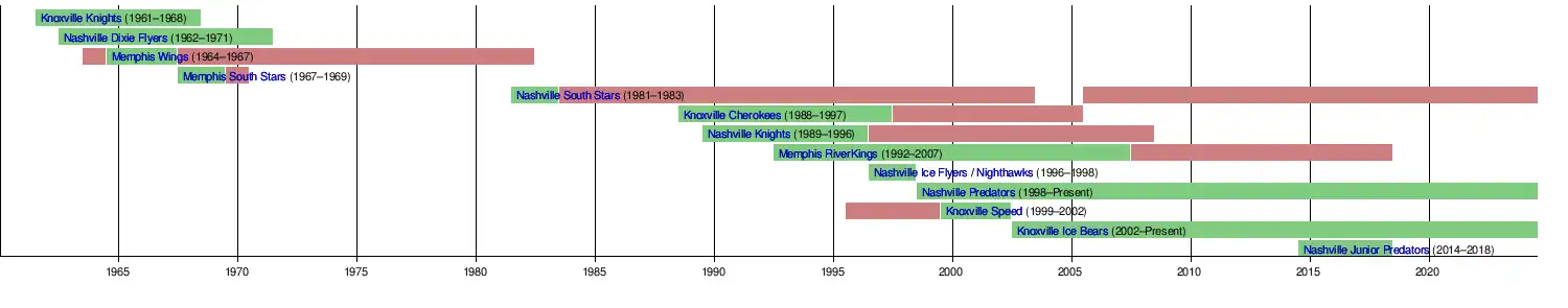 | Nashville Dixie Flyers | Nashville | EHL | 1962–1971 | Defunct |