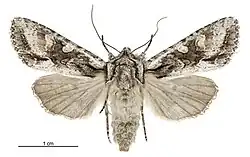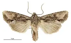 Ichneutica mutans, commonly known as the New Zealand cutworm or the grey-brown cutworm, is a moth of the family Noctuidae.[1] This moth endemic to New Zealand and can be found throughout New Zealand, including from Three Kings Islands down to Stewart Island. However this species is not found in the Chatham Islands. The adult moths are on the wing all year round. I. mutans is variable in appearance and can be confused with similar species in the same genus. As a result of the variety of host species consumed by the larvae of the species, including such crops as turnips, wheat and apples, this species is regarded as an agricultural pest. However between the early 1960s and late 1980s the population of I. mutans was shown to have decreased significantly, by over 80%, at two study sites.