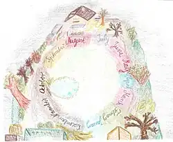 Since 2013, it has been suggested that the Bouba/Kiki phenomenon is a case of ideasthesia.[17][18][19] Most people will agree that the star-shaped object on the left is named Kiki and the round one on the right Bouba.[20][21] It has been assumed that these associations come from direct connections between visual and auditory cortices.[21] For example, according to that hypothesis, representations of sharp inflections in the star-shaped object would be physically connected to the representations of sharp inflection in the sound of Kiki. However, Gomez et al.[17][22] have shown that Kiki/Bouba associations are much richer as either word and either image is associated semantically to a number of concepts such as white or black color, feminine vs. masculine, cold vs. hot, and others. These sound–shape associations seem to be related through a large overlap between semantic networks of Kiki and star-shape on the one hand, and Bouba and round-shape on the other hand. For example, both Kiki and star-shape are clever, small, thin and nervous. This indicates that behind Kiki-Bouba effect lies a rich semantic network. In other words, our sensory experience is largely determined by the meaning that we assign to stimuli. Food description and wine tasting is another domain in which ideasthetic association between flavor and other modalities such as shape may play an important role.[23] These semantic-like relations play a role in successful marketing; the name of a product should match its other characteristics.[24]