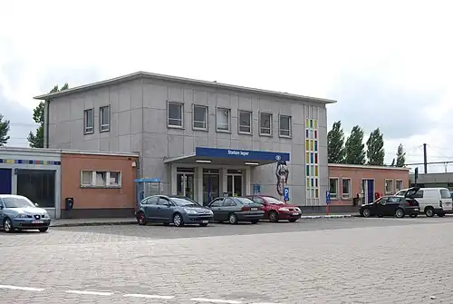 Ieper railway station (Dutch: Station Ieper; French: Gare d'Ypres)[a] is a railway station in Ypres (Dutch: Ieper) in West Flanders, Belgium. The station was opened in 1854, during the reign of King Leopold I. It is located on railway line 69 from Kortrijk to Poperinge. The train services are operated by the National Railway Company of Belgium (NMBS/SNCB).[1]
