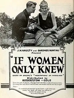 If Women Only Knew is a 1921 American silent drama film directed by Edward H. Griffith and starring Robert Gordon, Madelyn Clare and Blanche Davenport.[1] Its working title was Three Women Loved Him, and was the first film made by Gardner Hunting and James N. Naulty's new film production company Cayuga Pictures.[2][3] Irene Castle was the original femme lead but did not show up at the filming.[4]