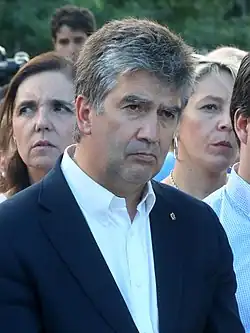 His political activity began in 1988, as Secretary General of the "Liberal Youths".[6] He later served as Secretary of Political Action of the New Generations (NN.GG.) of the People's Party (PP), reading in 1994 his PhD thesis in History at the National University of Distance Education before a tribunal formed by historian Javier Tusell, Juan Gómez Castañeda, fellow GEES colleague Florentino Portero, as well as two members of the Congress of Deputies representing the PP, Cristóbal Montoro and Luis Gamir Casares.[2][7]