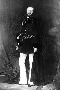 In the winter of 1875, he went to Rome, where he was made a Knight of Malta and received from the papal chancellery the title of Count for himself, his father and brother.[3] His brother and father, however, did not accept the title, often signing themselves as "not a count". He also augmentated his Ślepowron coat of arms, and called the new coat of arms "Milan".[3]