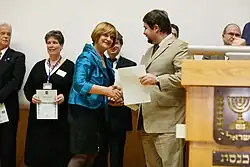 3Igor Yurievych Nikitin being awarded by the speaker of Israeli Knesset – Lia Shemtov
