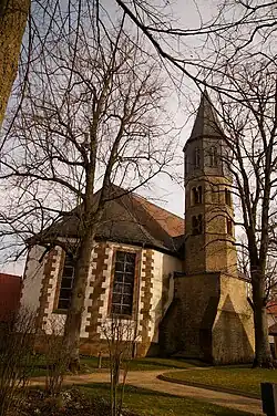 The protestant church was a simultaneum until 1968, when the catholics built their own chapel dedicated to Saint John. The protestants are part of the parish of Gauersheim, the catholics are managed by the parish of Kirchheimbolanden.[6]