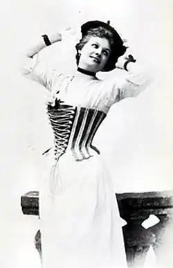 Pálmay began her stage career in Hungary (including Kassa, Budapest and Kolozsvár) by 1880 and played about two dozen roles in the 1880s, including Serpolette in Les Cloches de Corneville[3] In the early 1890s, she performed at the Theater an der Wien in Vienna, where she created leading roles in Carl Zeller's Der Vogelhändler (1891) and Johann Strauss II's Fürstin Ninetta (1893).[4] Soon, she was playing in Prague and the Unter den Linden Theater in Berlin. There, in 1893, she was cast in a German production of The Mikado to play the tenor hero, Nanki-Poo, in drag, and Sullivan unsuccessfully tried to stop the performances.[5] Later, Pálmay was surprised to find out that no woman had ever appeared on stage at the Savoy Theatre dressed as a man.[6]