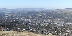 Ilkley is a spa town and civil parish in the City of Bradford in West Yorkshire, in Northern England. Historically part of the West Riding of Yorkshire, Ilkley civil parish includes the adjacent village of Ben Rhydding and is a ward within the City of Bradford. Approximately 12 miles (19 km) north of Bradford and 17 miles (27 km) north-west of Leeds, the town lies mainly on the south bank of the River Wharfe in Wharfedale, one of the Yorkshire Dales.