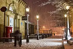The civil parish is served by two railway stations: Ilkley[38] and Ben Rhydding.[39] These are linked by the Wharfedale Line, along which Northern Trains operates services between Ilkley, Bradford Forster Square and Leeds stations.[40]