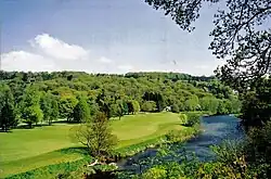 In October 1897 the committee negotiated with Myddleton Estate to rent 70 acres of pasture running along the north side of the River Wharfe. Work began on the new course in February 1898 and was completed by July of that year. The course was designed by Alister MacKenzie and Harry Colt and measures 6,262 yards.[3] The old links course on the moor was leased to an Ilkley Tradesmen's group and golf continued to be played there until the Moor Club was wound up in 1947. On 13 April 1907, Harry Vardon and noted golf architect James Braid played an exhibition match to mark the opening of the new clubhouse.[4] In 1921 the course was described as an "excellent links" course.[5] In 1970 many trees were planted around the course, changing its appearance.[4] The club has hosted the competition for the OCCA and West Riding Golf Trophies, the Yorkshire Ladies' Challenge Bowl in 1955 and the British Girls' Open Championship in 1969.[6][7][8][9]