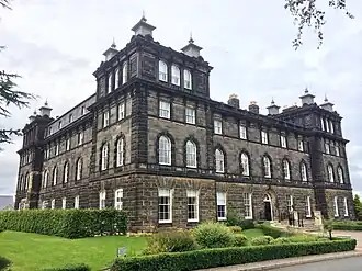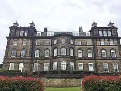 Wells House possesses a monumental and sombre character, constructed in dark local stone using an Italianate style influenced by the work of John Vanbrugh and Charles Barry. Brodrick's biographer Derek Linstrum described it as a "miniature Blenheim Palace".[3] Its original health purpose was to offer cold baths and water treatments, which were popular in the 19th century when Ilkley was a fashionable and affluent spa resort. After closure of the hydropathic establishment in the 1880s, it was used as a hotel, as a further education college from 1952, and was converted into 24 luxury apartments in 2003.[4]