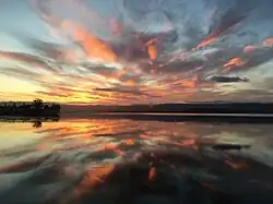 The word "illawarra" is derived from the Aboriginal Tharawal word "allowrie," also sometimes spelled as "elouera" or "eloura." According to A. W. Reed, the word is variously translated as "pleasant place near the sea" or "high place near the sea."[2][3] The prefix of "illa" is also known to mean "white clay;" with the suffix "warra," sometimes spelled as "wurra," meaning "mountain" in the local indigenous language.[3] George Bass and Matthew Flinders were the first Europeans to visit the area, with Flinders recording that it 'was called "Allowrie" by the natives'.[2]