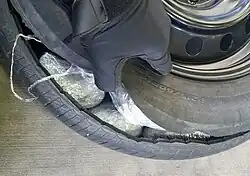 According to the Africa Economic Institute, the value of illicit drug smuggling in Guinea-Bissau is almost twice the value of the country's GDP.[31] Police officers are often bribed. A police officer's normal monthly wage of $93 is less than 2% of the value of 1 kilogram (2.2 lb) of cocaine (€7000 or $8750). The money can also be laundered using real estate. A house is built using illegal funds, and when the house is sold, legal money is earned.[32] When drugs are sent over land, through the Sahara, the drug traders have been forced to cooperate with terrorist organizations, such as Al-Qaeda in Islamic Maghreb.[33][34]