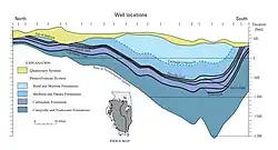 2. ^ Hatch, J.R.; Affolter, R.H. (2002). "Geologic Overview, Chapter C of Resource Assessment of the Springfield, Herrin, Danville, and Baker Coals in the Illinois Basin, U.S. Geological Survey Professional Paper 1625–D" (PDF). USGS. Retrieved 9 November 2020.