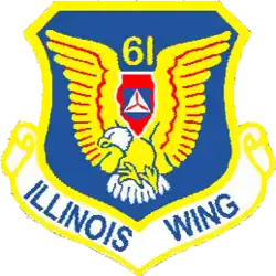 The Illinois Wing of Civil Air Patrol (CAP) is the highest echelon of Civil Air Patrol in the state of Illinois. Illinois Wing Headquarters is located in West Chicago, Illinois.[1] The Illinois Wing consists of over 1,000 cadet and adult members at 25 locations across the state of Illinois.[2] "Together we all succeed!"