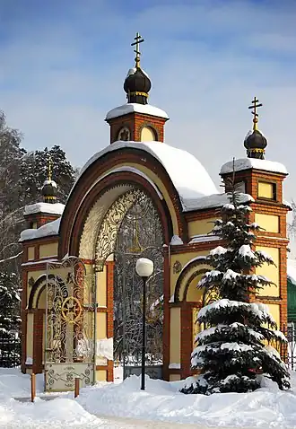 Next to the railway station there is a majestic temple complex of the Holy apostles Peter and Paul, which included the eponymous meter temple (used in the summer), the temple of the Prophet Elijah (ground floor, winter) and the Church of Presentation of the Blessed Virgin Mary (separate building). Archpriest Dimitry (Fedorov) is the father superior of the temple complex. On the temple grounds, there is the grave of the founder and the first farther superior, father Paul (Zhilin). The relics of the St. Optin elders and St. Alexander Yaroslavich Nevsky are revered sacred objects of the temple. On August 5, 2018, the Church of the Holy apostles Peter and Paul with the altars were solemnly consecrated by Juvenal, the metropolitan of Krutitsa and Kolomna.