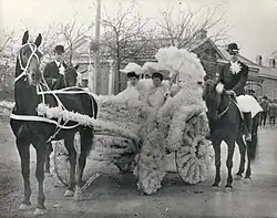 Ima Hogg was born in Mineola, Texas, in 1882 to Jim Hogg and Sarah Ann "Sallie" Stinson. She was the second of four children, including brothers William Clifford Hogg (1875–1930), Michael Hogg (1885–1941), and Thomas Elisha Hogg (1887–1949).[11] The Hogg family had long been active in public service. Her great-grandfather, Thomas Hogg, served in the state legislatures of Georgia, Alabama, and Mississippi. Her grandfather, Joseph Lewis Hogg, served in the Congress of the Republic of Texas and helped to write the Texas State Constitution.[21] At the time of her birth, Hogg's father was the district attorney of the Seventh District in Texas.[22] His term expired in 1884, and the family moved to Tyler, where he practiced law. Two years later, Jim Hogg was elected Texas Attorney General and the Hogg family moved to the state capital, Austin, where Ima attended kindergarten.[23] When Jim Hogg was elected the first native-born Governor of Texas four years later,[22] Ima accompanied her mother and elder brother to the swearing-in ceremony and inauguration ball in January 1891, thus witnessing the first inauguration in the newly erected Texas State Capitol.[24] The family moved into the Governor's Mansion. Built in 1855, the building was in poor condition, with cracked walls and dilapidated furnishings. Ima and her siblings were expected to help renovate the building to a liveable state—she was required, among other things, to pry chewing gum from the furniture and door moldings.[25]