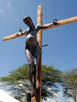 In 2007, Jens Galschiøt brought two statues of the crucified teenager to the World Social Forum in Nairobi. In order to avoid unwanted controversy, these statues were produced clothed.