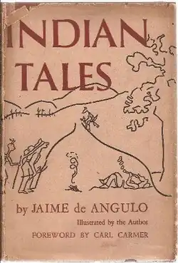 Indian Tales is a collection of connected short narratives written and illustrated by Jaime de Angulo, published by A. A. Wyn in 1953.[1] The stories revolve around an anthropomorphic animal family traveling across California, and encountering various mythological figures, such as Old Man Coyote, Loon Woman, and various animal tribes who live as the indigenous peoples of California did in pre-European times. The book is an imaginative retelling of many of the folktales and myths collected by de Angulo as an erstwhile anthropologist. The stories are written to be of interest to younger readers, but are also read by adults. The books foreword is by Carl Carmer. The Indian Tales were originally read live on KPFA radio in 1949, and released as a recording.[2] The book has been used as a text in California history classes.[3][4] De Angulo writes in the foreword,