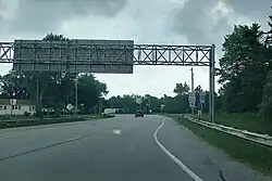 SR 212 begins at an interchange with US 20, on the east side of Michigan City, as a four-lane undivided roadway. It heads north passing west of Michigan City Municipal Airport while passing through woodland with some houses. The road bridges over the South Shore Line and has an at grade crossing with another railroad track, before passing through a mixture of woodland and industrial properties. The road ends at an intersection with US 12, in the northeast area of Michigan City.[1][2][3] In 2016, traffic surveys from the Indiana Department of Transportation (INDOT) showed that on average, 15,912 vehicles used the highway daily near the southern end and 6,669 vehicles did so each day near the northern end, the highest and lowest counts along the highway, respectively.[4]