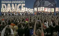 The Indiana University Dance Marathon, commonly known as IU Dance Marathon or IUDM,[1] is a 36-hour dance marathon that takes place every November at Indiana University in Bloomington, Indiana, United States with the purpose of raising both funding and awareness for pediatric care. In 1991, student Jill Stewart started IU Dance Marathon in honor of her friend, Ryan White, who died from AIDS the year before. Since then, IUDM has raised over $50 million for Riley Hospital for Children in Indianapolis, IN, including most recently $3,003,837.23 during the 2023 marathon. The 2024 Indiana University Dance Marathon took place November 15–17.