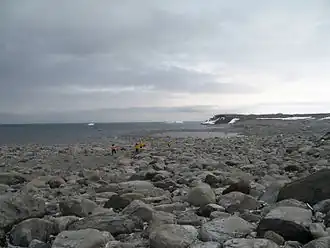 Robert Falcon Scott's Terra Nova Expedition (1910–1913) comprised several groups. One of these, the Northern Party, led by Victor Campbell, did not accompany Scott into the interior but wintered at Cape Adare. In 1912, that group (composed of six men in total), began the long journey homewards and began making their way to Cape Evans (via Hut Point). However, they were dropped at Evans Coves with sledging provisions for six weeks with the intention of completing geological work. After the work was done they were left with rations for about four weeks, as it was not anticipated the ship would have trouble picking them up later in February. But the Terra Nova could not reach them due to heavy pack ice.[2]: xlii Unable to connect with their ship, the Northern Party was forced to winter in Antarctica again. In March 1912 the party excavated a small 3.7-by-2.7-metre (12 by 9 ft) ice cave in a snow drift they nicknamed "Inexpressible Island" where they spent the winter in miserable conditions, supplementing their rations by killing scarce seal and penguins for meat.[3]
