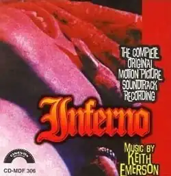 Inferno is the soundtrack to Dario Argento's film of the same title, first released as a 15-track LP in 1980 on Atlantic Records (K 50753), in 1981 by Cinevox, then as a CD in 2000, with a bonus track of outtakes reportedly utilized in the film itself, but not included on the original vinyl release. The score was composed and performed by keyboardist Keith Emerson, former member of the progressive rock band Emerson, Lake & Palmer.
