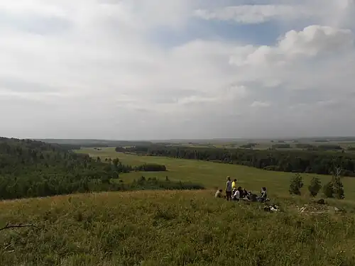 The Ingala Valley is located 75 km south of Tyumen, at the mouth of the Iset River. At this point, the borders of the Isetsky, Yalutorovsky, Zavodoukovsky and Uporovsky Districts of the Tyumen Oblast are closed. The valley was named in 1994 by the most common local toponyms translated from the Siberian Tatar language as scirpus.[6]