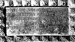 The blanks after his age and the date indicate that he expected death soon (within ten years) in 1380,[16] but in the event, Ingram lived into the second half of the first decade of the 15th century. Ingram was still alive on 6 April 1407, but was dead by July 1408, when a papal document confirms his recent death and the resulting vacancy in the church of Tealing.[19] The inscription is probably the earliest, or earliest known inscription, written in Scotland north of the River Forth in the English language.[20]