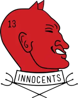 The society was named for the thirteen Popes named Innocent, who have historically stood as champions against evil.[1] The badge of the Society of Innocents is Mephistopheles' head above crossed tridents.[1] Mephistopheles represents the evil the society seeks to overcome.